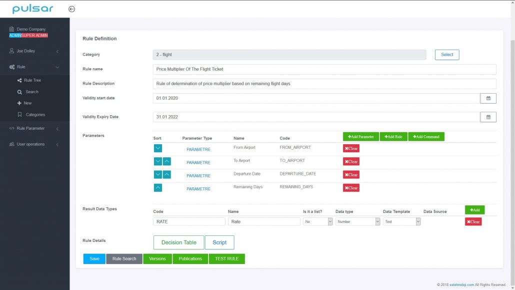 Through the simple web interface, business units can define their own rules. This will help your business to decrease IT dependency and code developments. Rule changes are always ready to go live at any time you want.